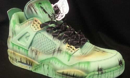 Kickasso Kustoms为50 Cent特别打造了一款自由女神像Air Jordan 4。鞋身染以渐变色调铜绿,部分绘上铜黄色,细节以类似雨水洗礼效果装饰,整体呈现雕塑历史感,鞋舌以黑色喷绘自由女神像