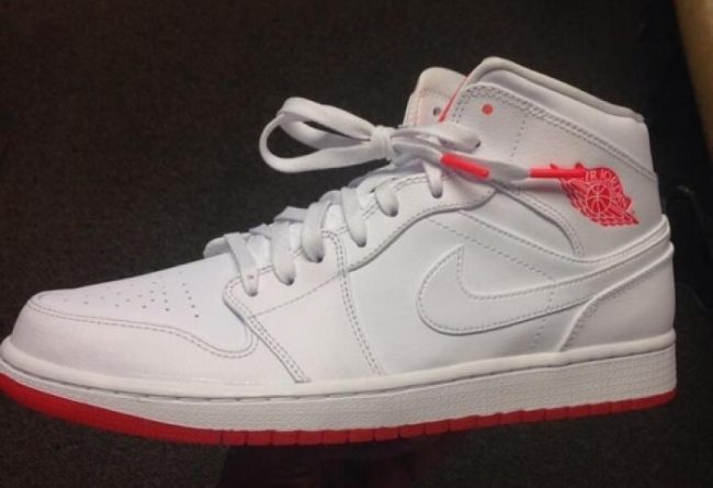 Infrared 23主题色调Air Jordan 1 Mid Premium再度曝出实物照,干净的白色鞋身配以红外线红色鞋舌绣标/鞋侧飞翼logo/鞋带装饰以及大底,是夏季搭配的好选择。此款即将发售。