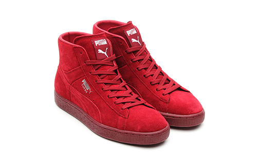 Puma近日将亮眼的大红色运用在经典鞋款Puma Suede Mid Classic+之上,醒目的红色鞋身搭配深红大底,辅以白色细节点缀令整双鞋款显得极为喜庆。这双Puma Suede Mid Classic+ 现已在atmos等指定鞋