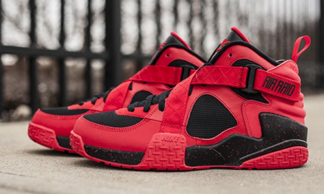 红黑配色的加持,令全新复刻的Nike Air Raid呈现出独特的潮流感。鞋款以亮眼的红色为主色调,搭配黑色细节、内衬。鞋款上标志性的交叉绑带选用红色呈现,黑色中底辅以红色泼墨细节