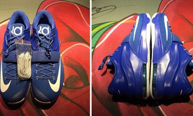 肯塔基大学野猫队配色的 KD7 PE 亮相网络,整体蓝白搭配,蓝色鞋身点缀白色的 Swoosh 和 KD Logo,以标志性的肯塔基大学配色呈现。