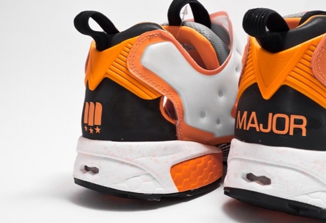 Major DC今日再曝联名款Reebok Insta Pump Fury细节谍照,这双刚刚曝光的鞋款将使用黑橙色调呈现。鞋面使用透明材质呈现,令Reebok Insta Pump Fury标志性的Pump充气系统可以充分的呈现在众人面