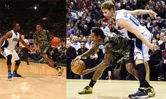 为庆祝一年一度的老兵节,多伦多猛龙队在今天对阵魔术队的比赛中穿上了短袖迷彩队服。本赛季刚刚加盟猛龙队的Louis Williams在比赛中穿着一双之前曾由Drake亲着曝光的Air Jordan 3 OVO登