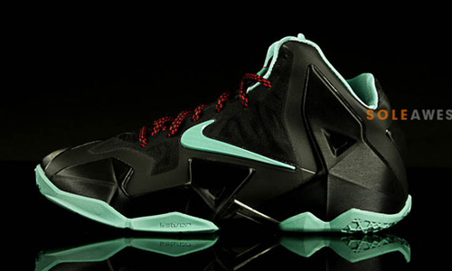 Nike LeBron 11 GS 黑/薄荷绿/红 实物图赏