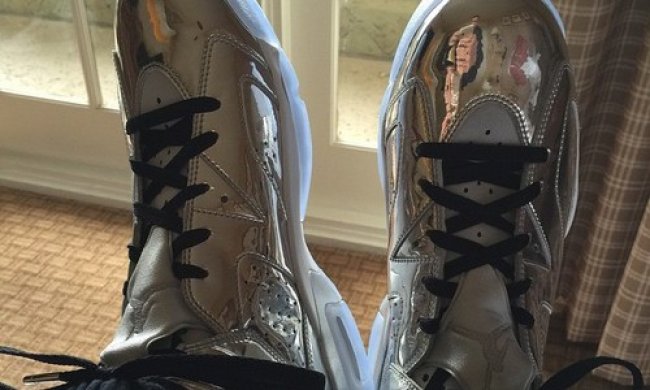 镜面发泡鞋面加持的Nike Air Foamposite One Mirror 将作为 2015 年 NSW ASG 全明星系列的一份子,在全明星赛期间登场,而 Penny 便士哈达威耐不住寂寞,提前上脚曝光了这款球鞋。 以镜面鞋面呈