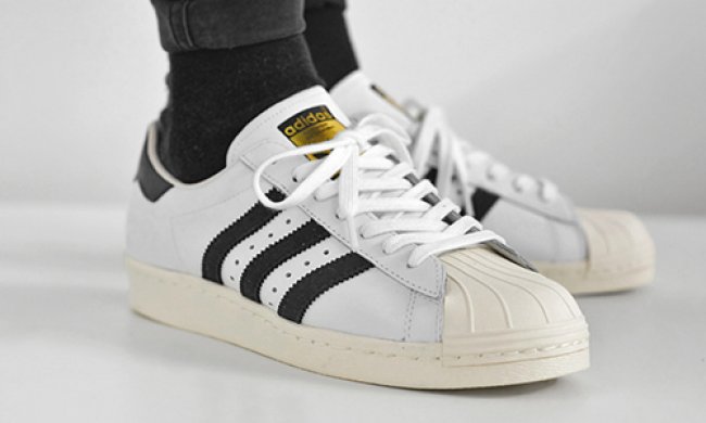 adidas Originals 近日再推adidas Superstar 80s 经典白黑金配色。白色鞋面搭配简洁的黑色三道杠点缀,并辅以做旧效果的贝壳鞋头与中底。鞋舌上的黑金三叶草Logo令整双鞋款变得与众不同。