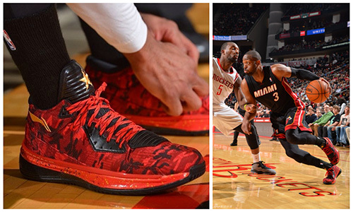 国内专属的李宁韦德之道2螺丝钉正式于今日在李宁各大店铺及官方商场上市,而韦德也在今天对阵火箭的比赛中穿上了此鞋,红黑的迷彩配色配以热火客场球衣,效果极佳。李宁韦德之