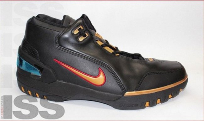 如果Nike LeBron系列开始复刻,死忠们必定会翘首企盼曾经未发售的各款球员版本能够量产市售,眼前这双黑金色Nike AirZoom Generation PE或许就是候选之一。黑色皮革制作鞋身,细节点缀金色