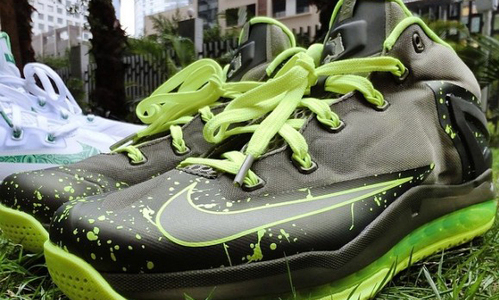 之前已有多次实物曝光的Dunkman别注Nike LeBron 11 Low曝出上脚效果照,军绿色鞋身配以荧光色泼墨设计以及细节装饰,略微低调的色彩更适合日常搭配,荧光色又让其不失活力。