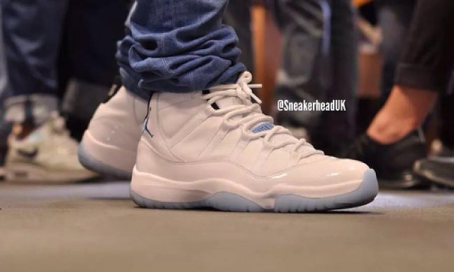 继续带来年底压轴鞋款Air Jordan 11 Legend Blue 的更多实物图片。白色鞋身点缀天蓝色细节,此款传奇蓝 Air Jordan 11 采用了近似 Columbia 的配色,但在细节方面以全新样式呈现,白蓝黑三色搭