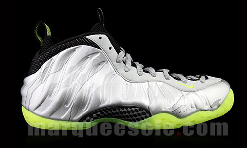 这款新配色的Nike Air Foamposite One 不仅鞋面和鞋带都带有 3M 反光,并且将推出 GS 女鞋,广大的女性同胞们也能享受 Foamposite 带来的无穷魅力。 银色和荧光绿的搭配十分抢眼,在弱光环境