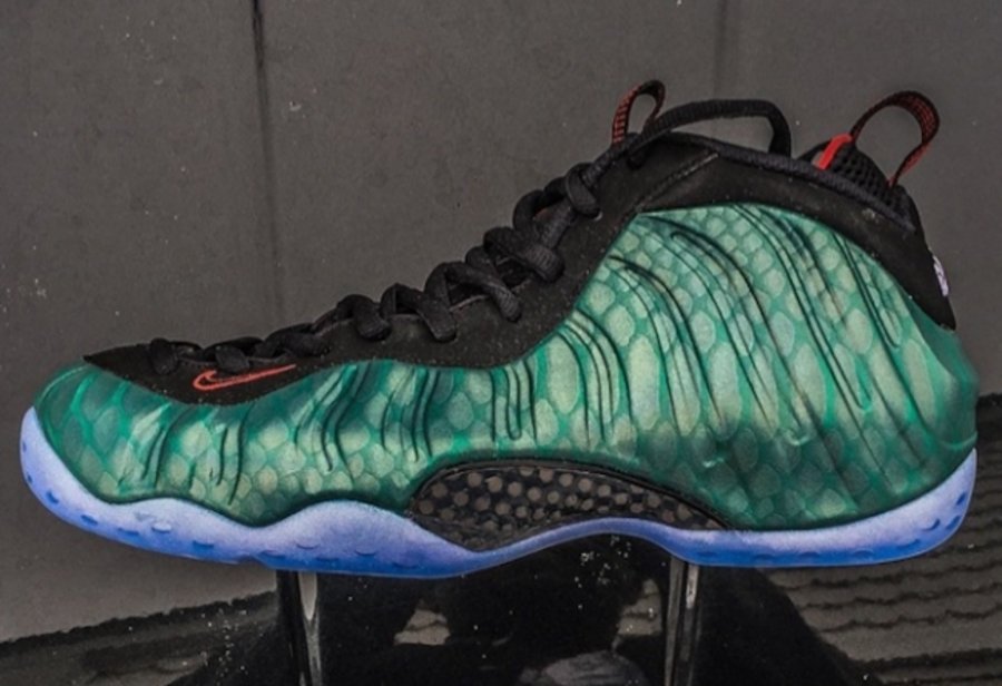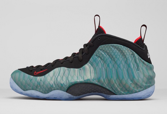 带来钓鱼喷Nike Air Foamposite One Gone Fishing 全新上脚图片,以鱼鳞纹路呈现的发泡鞋面带来了独特的质感,搭配黑色鞋领和蓝水晶外底,细节的红色点缀和后跟的鱼骨 Logo 颇为抢眼。 众多