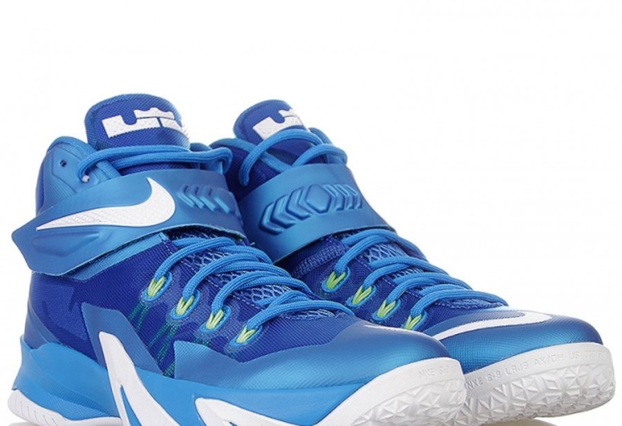 随着Nike Zoom Soldier 8 正式发布的临近,网络上已经有来自俄罗斯的网站将此鞋最新的蓝白配色放上了货架。鞋身以蓝色为主色调,Hyperfuse鞋面辅以荧光色动态飞线细节。白色大底、皇冠