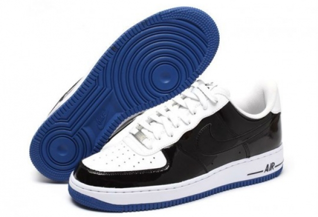 Concord 配色方案在 Air Jordan 系列的成功,让 Nike 看到了更大的商业价值。此次,Nike Sportswea r将 Concord 使用在经典鞋款 Nike Air Force 1 之上。鞋身由大面积黑色漆皮与白色细节装点而成,搭