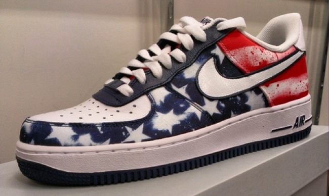 为2014年独立日特别设计的全新Nike Air Force 1即将正式发售。鞋身以帆布物料搭配皮革材质,帆布印有白色五星,后跟染以红色条纹,鞋款呈现涂鸦风格星条旗设计。此款货号488298-425。