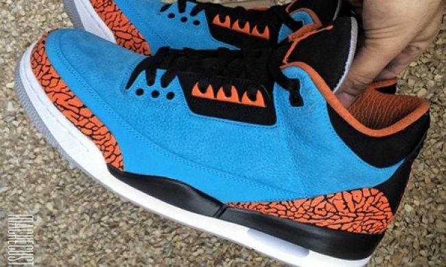 Mache晒出自己的全新定制作品,选择Powder Blue配色Air Jordan 3作为模版,以其作为雷霆队的蓝色并在内衬、鞋舌Jumpman logo、鞋眼装饰以及鞋身爆裂纹部分染上橙色,呈现出雷霆客场配色的风