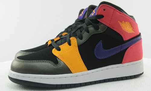 Air Jordan 1 Retro Mid GS 黑/红/紫/黄 即将发售