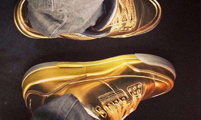 金色 Air Jordan3 不再是 Usher 的专属了,Drake 也收到了来自 Jordan Brand 的金色大礼。此款Air Jordan 3 OVO PE 采用金色鞋面呈现,细节辅以黑色。