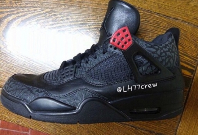 一款疑似Air Jordan Lab系列的新款样品提前曝光实物照。黑色皮革Air Jordan 4搭配Air Jordan 3最为标志性的爆裂纹皮质,整体风格颇为奇特。
