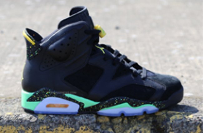 这款Air Jordan 6 Brazil 以 2014 年巴西世界杯为设计灵感来源。整体采用了深色的鞋面,点缀绿色细节,中底和后跟鞋提处都采用了泼墨处理,再搭配蓝色水晶大底。 目前尚无具体的发售日