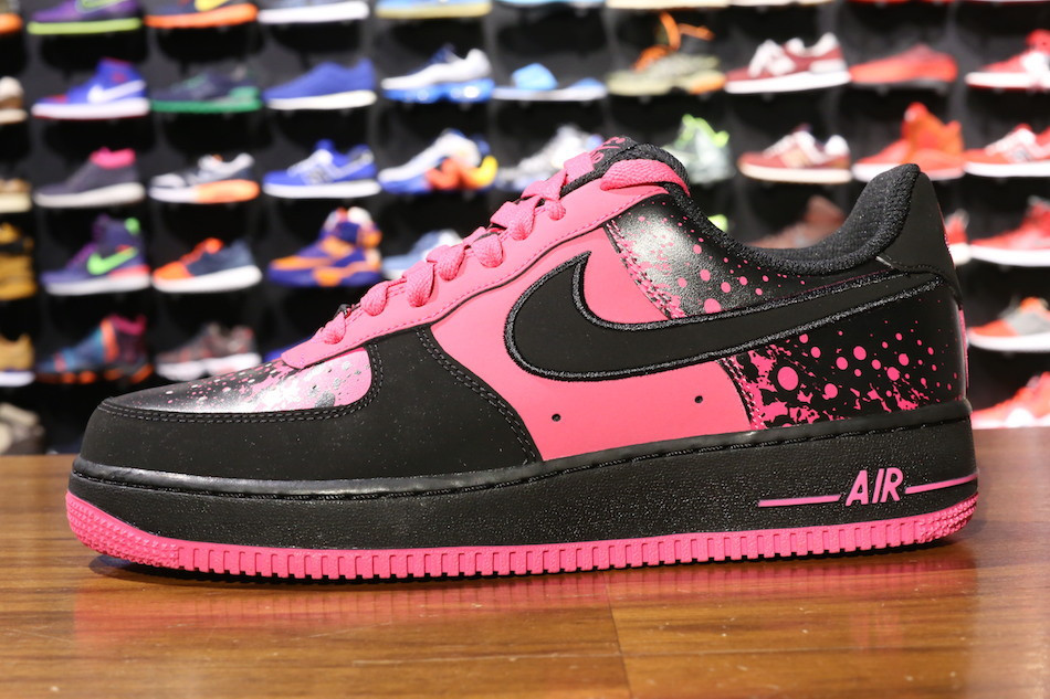 黑色鞋身搭配粉色大底,辅以粉色细节及泼墨设计让这双全新配色的Nike Air Force 1变得极具特色。此鞋款将于2月8日正式发售,售价:100美元,货号: 488298-616。