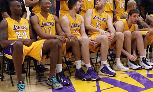 Kobe Bryant 亲着Nike Kobe 9 Low EM参与湖人队全家福拍摄