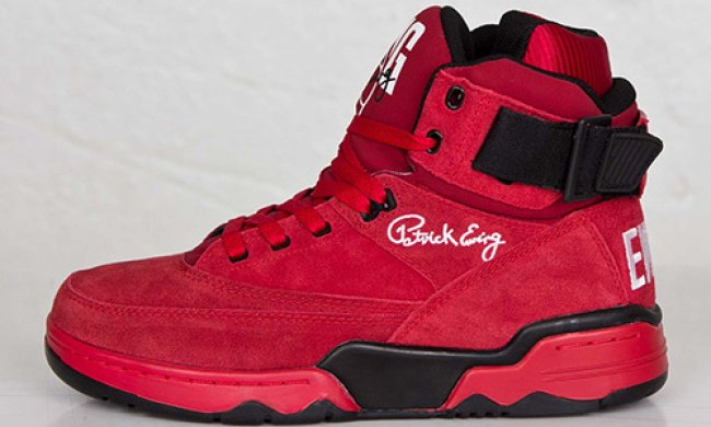 Ewing 33 Hi 带来全新红黑配色,颇具公牛队风采,采用质感十足的麂皮鞋面打造,火红鞋身十分抢眼,而黑色细节的点缀则起到了很好的平衡作用。