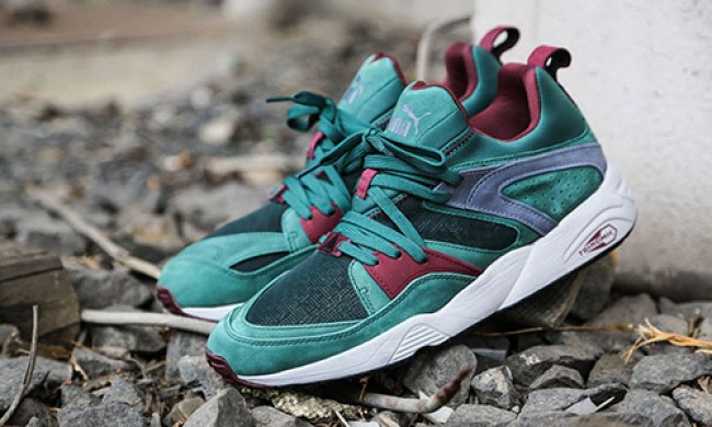 在PUMA Blaze of Glory 鞋型上分别以黑紫、绿/酒红、灰黑作为主色调,采用麂皮和网布面料拼接打造鞋身,将于近期发售。