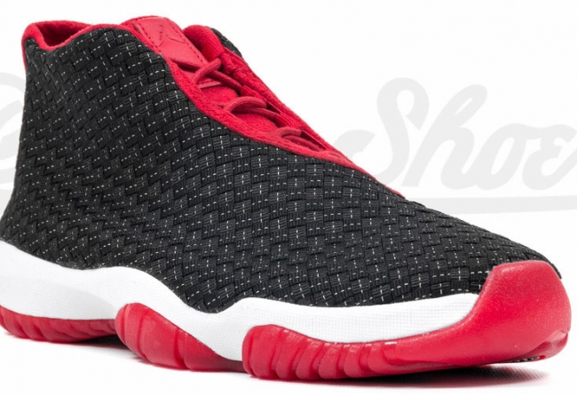 人气颇高的Bred配色方案,此次出现在全新鞋款Jordan Future之上。黑银编织鞋面搭配白色中底及红色水晶大底并辅以红色内衬,令鞋款整体颇有点Air Jordan 11 Bred的感觉。据悉,这款Jordan