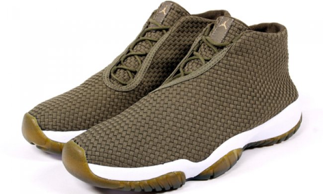 近似橄榄色的编织鞋身搭配白色中底,金色点缀于极少细节部分,此款全新Jordan Future被称为鬣蜥蜴,货号656503-201,6月14日正式上架。
