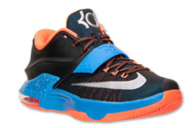 2014-15NBA常规赛将于10月28日正式打响,而Nike为杜兰特准备的全新雷霆客场配色的Nike KD 7 也将于10月31日正式发售。这款Nike KD 7 继承了之前KD 系列的风格,黑色主色调鞋身搭配橙色与蓝色