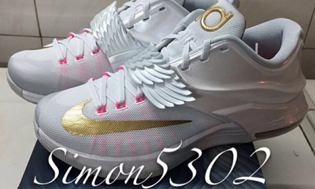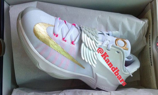 KD7 Aunt Pearl 以纯净的白色鞋身点缀抢眼的金黄细节,天使飞翼造型的魔术贴给此鞋款增添了不少亮点。 作为 KD 系列的 Kay Yow 抗乳腺癌配色,Aunt Pearl 配色旨在向杜兰特因癌症去世的阿姨