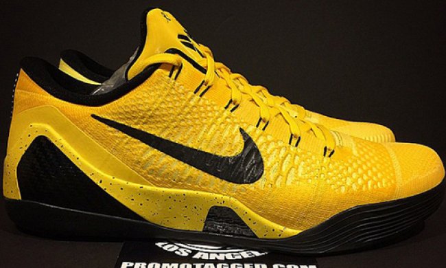 Kobe 9 Elite Low PE 黄黑配色实物亮相网络,黄色的 Flyknit 鞋面点缀黑色 Swoosh、内衬和鞋底,夺目的整体感受使其颇为特别。