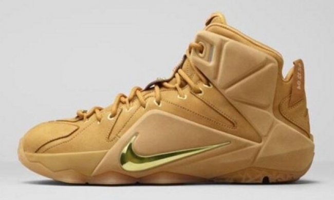 为了致敬詹姆斯的第一款签名战靴的经典配色 Nike Air ZoomGeneration Wheat,LeBron 12 EXT 鞋型以同样的小麦色皮革点缀金色细节呈现。Nike AZG Wheat 首次亮相于 2004 年的新秀挑战赛,是詹姆斯崭