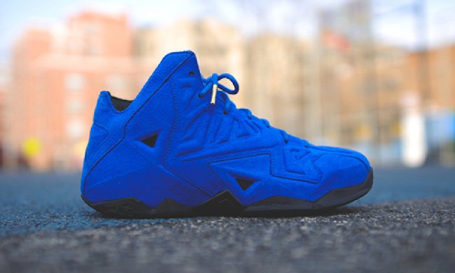 NNike LeBron XI EXT系列率先登场的将是这款Blue Suede配色,富有质感的蓝色麂皮打造鞋身,搭配黑色橡胶大底及皮革内衬与鞋舌,令原本拥有强悍线条的Nike LeBron XI呈现出全新的街头潮流感。