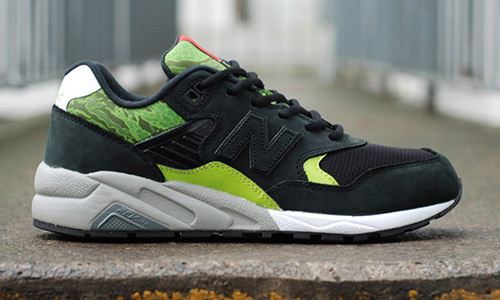 眼前这双mita sneakers x SBTG x New Balance 580将于1月18日正式发售。富有质感的黑色麂皮鞋身搭配白灰中底,绿色虎纹迷彩装饰于鞋面之上,再辅以独特的鞋垫图案,令整双鞋款极具特色。