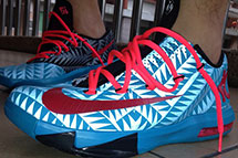 Nike KD 6将会继续其一贯的N7系列,率先曝光鞋身附有图腾暗纹的蓝/黑色版本,细节部分辅以红色,鞋舌印有白色N7 logo,相较于往年的N7配色更为高调。