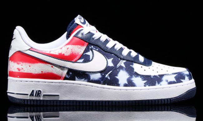 为2014年独立日特别设计的全新Nike Air Force 1即将正式发售。鞋身以帆布物料搭配皮革材质,帆布印有白色五星,后跟染以红色条纹,鞋款呈现涂鸦风格星条旗设计。此款货号488298-425。