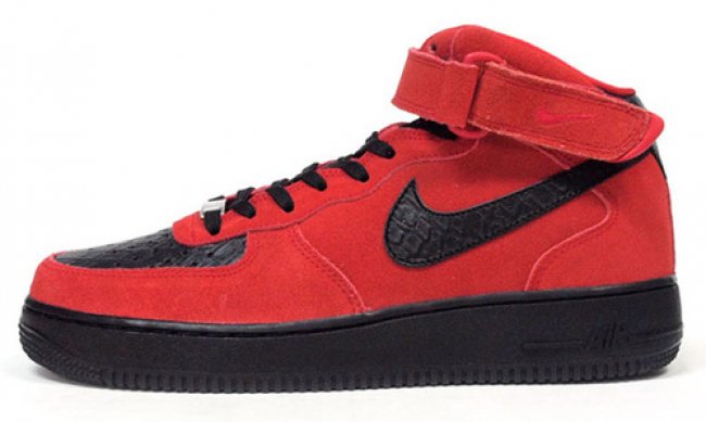 Nike Air Force 1 Mid 迎来新款配色的发售,在中帮鞋型上以红色麂皮打造。细节采用黑色点缀,搭配黑色大底,整体黑红装扮颇为抢眼。 而鞋身的黑色部分呈现出的蛇纹纹理进一步增添了亮