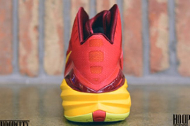 Nike Hyperdunk 2014 此次上市全新红黑配色,红色Hyperfuse鞋面搭配黄色Lunarlon中底、动态飞线及Swoosh。红黄相间的鞋身,让人联想到中国队标志性的番茄炒蛋色调。这款Nike Hyperdunk 2014 货号: