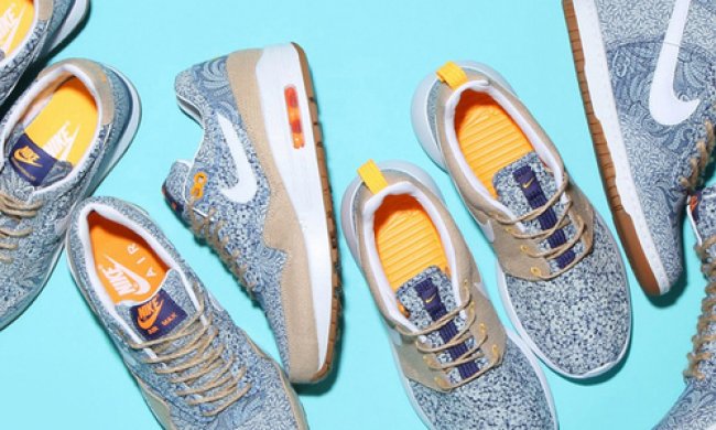 Nike Sportswear将联手Liberty于夏季再推全新亚麻系列,包含Nike Internationalist、Nike Roshe Run、Nike Air Max 1以及Nike Dunk Sky High等鞋款,鞋身以蓝色印花装饰,配以部分淡色亚麻材质,细节以橙色