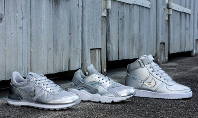 Nike WMNS 在 Nike Air Huarache、Internationalist 、Vandal 鞋型上以液态金属银的整体风格呈现。银光闪烁,定能成为众人眼球的焦点。