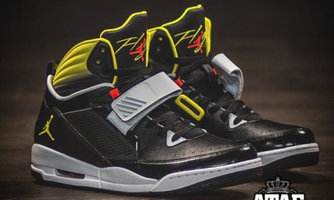 从名字上就能分辨出这双Air Jordan Flight Remix,就是一双融合了多双经典鞋款精华打造而成的杂交鞋款。鞋款以复古的高帮形象世人,并使用雷公配色方案打造,黑色皮革鞋面搭配水晶大