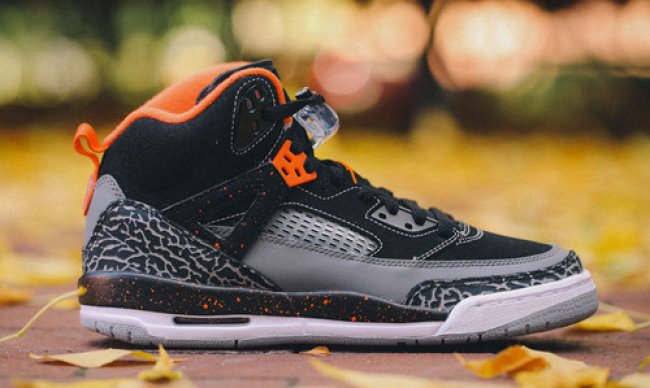 为迎接万圣节的到来,Jordan Brand特别打造节日主题配色GS专属Jordan Spizike。选择黑色搭配灰色作为鞋身主色调呈现夜晚感觉,细节点缀橙色突出南瓜灯的元素。此款将于10月22日正式上架