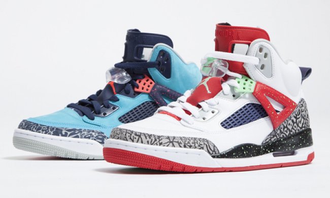 Jordan Spizike 新色曝光,将于 2015 年春季发售两款全新配色,一款以白色鞋身点缀红色细节,泼墨装扮颇为特别,另一款则以水蓝鞋身辅以海军蓝细节,将于 2 月份正式发售。