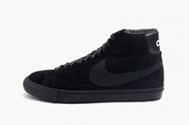 川久保玲创立的COMME des GARCONS再度携手Nike,打造联名Nike Blazer High Premium鞋款。鞋款选用黑色麂皮呈现鞋身,并搭配同色调硫化大底,整体低调而富有细节。防水鞋带、皮质内衬的加入,