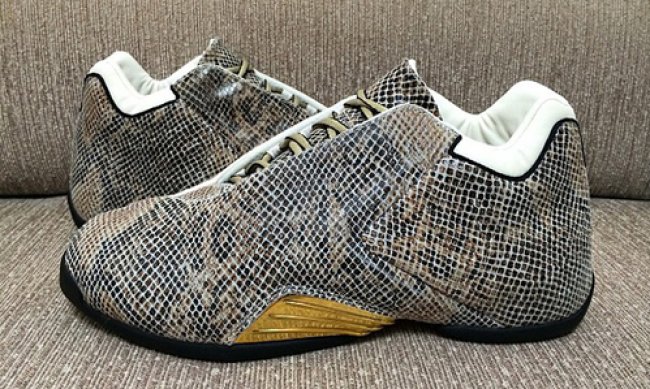 同样为全新复刻样品,除了暗蓝色鳄鱼纹版本之外,一款蛇纹adidas T-Mac 3样品同期曝光。接近真实蛇皮色调的蛇纹物料制作鞋身,配以黑色、金色以及白色细节,暂无市售信息披露。