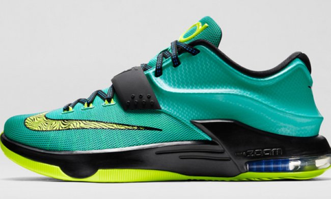 继Good Apples之后,全新Uprising配色KD VII即将登场。向Durant儿时对气象的热爱致以敬意,以闪电以及大气事件作为灵感,鞋身选用玉石绿作为主色调配以黑色以及荧光绿,可见Zoom Air则以相