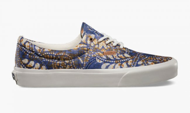 日前Vans California支线释出蜡防印花系列。防印花技术是将蜂蜡、木蜡或松脂,按照一定配方比例溶解成蜡液,手工涂抹描绘在织物上、或者通过镂空雕版浇注在织物表面,然后再去印制