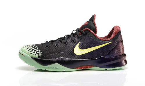 全新Nike Zoom Kobe Venomenon 4即将登场,此双鞋身选用黑色作为主色调,后跟部分以渐变效果承接庭紫色,鞋头以及大底搭配薄荷绿,细节附有深红色以及柠檬黄点缀。此款货号635578-003。